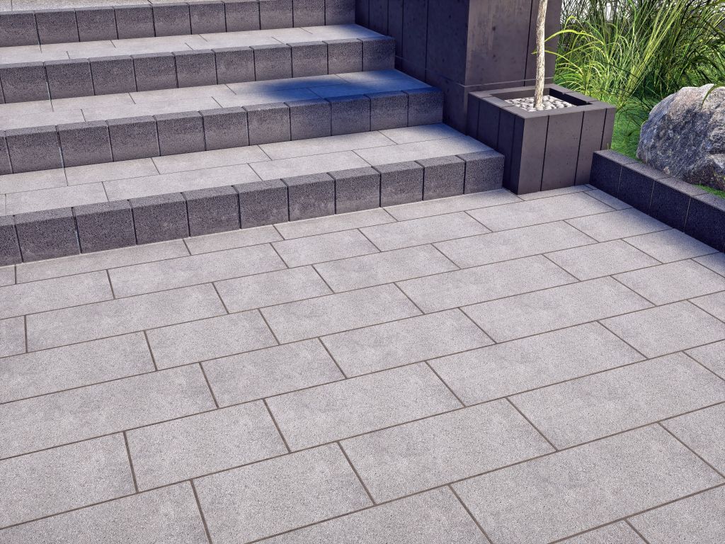 Alternatywą dla awangardowych płyt Extrano jest tegoroczna nowość – ascetyczna kostka Polbruk Triada. Jak sama nazwa wskazuje, występuje ona w trzech formatach. Posiada gładką fakturę i jest dostępna w rozmiarach: 20×30 cm, 20×40 cm i 20×50 cm oraz w czterech wersjach kolorystycznych pasujących do nowoczesnej architektury. Są to cztery odcienie szarości: szary, stalowy, grafitowy i nerino oraz kolor onyx będący melanżem bieli, szarości i pomarańczu. Pomimo swojego ascetycznego wyglądu, Triada daje dość dużą swobodę aranżacyjną. Można z niej układać różne geometryczne wzory i kompozycje kolorystyczne utrzymane w szarej tonacji. Zbudowane z jej użyciem nawierzchnie są bardzo minimalistyczne w wyrazie, ale przez to także eleganckie, bo czyste w formie. Zaletą kostki Triada jest również jej grubość, która wynosi 8 cm, co sprawia, że z technicznego punktu widzenia posiada ona uniwersalne zastosowanie.