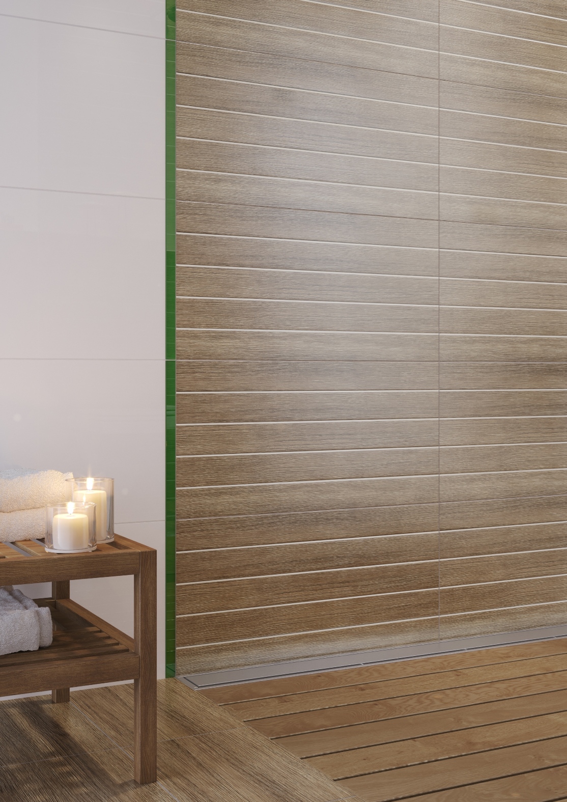 Kolekcja łączy uniwersalną biel ze stonowaną kolorystyką drewna i zieleni, co pozwala na aranżację wnętrza przytulnego i emanującego świeżością. Wśród ściennych i podłogowych płytek mamy wersje satynowe i błyszczące, gładkie i strukturalne.