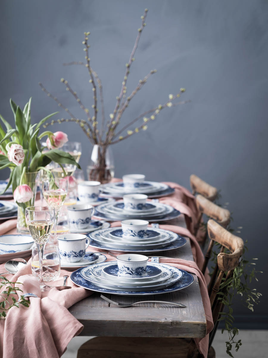 Bardziej wyrazistą oprawę wielkanocnego stołu zapewni serwis SENTIMENT, który nasyci wnętrze głębokim, pięknym odcieniem kobaltu. Jednocześnie przyniesie wiosenne akcenty, gdyż jest zdobiony unikalnym, ręcznie litografowanym motywem rozkwitających kwiatów. Stół zastawiony tą porcelaną nie wymaga już wielu akcentów dekoracyjnych. Chłodny, niebieski odcień warto połączyć z miękką tkaniną w kolorze pudrowego różu, a jako dodatki wystarczą małe pisanki, pastelowe piórka, przezroczyste świeczniki i delikatne kwiaty.